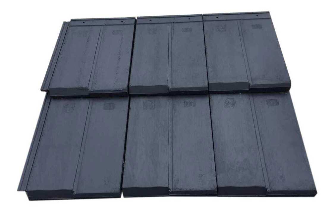 采用上下模压成型,外形美观大方,瓦面光滑平整,尺寸整齐划一,密度均匀一致,并且瓦面采用高级陶瓷彩色釉面涂料,高温烧成使其色彩永不褪色。